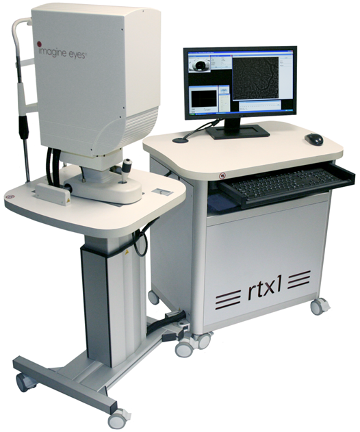 補償光学網膜イメージングカメラrtx1TM(Imagine eyes社)は錐体細胞のモザイク構造や網膜毛細血管、網膜神経線維層等、網膜の微細構造を撮影できる眼底カメラである。平面的に視細胞の配列や数を観察することで、黄斑疾患での視細胞が障害されている範囲を判定することができ、その経過を追うことによって、視細胞レベルでの病態の変化を知ることができる。現在のところrtx1TMが導入されている施設は限られており、広く日常的に用いられてはいないが、将来的に眼底カメラが進化していく方向を指し示す先進的な臨床機器である。