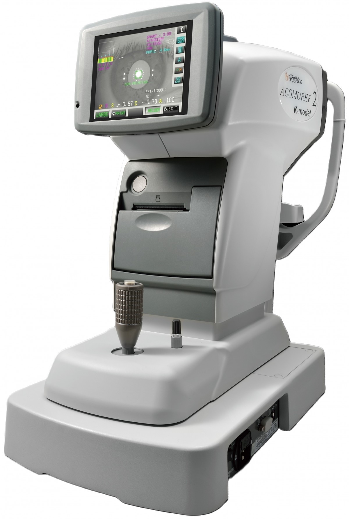 アコモレフ2は従来の他覚屈折測定(オートレフ)に加えて、調節機能解析が加わった新しい複合型他覚検眼機である。提示された内部固指標に被験者がピント合わせを続けたときの“水晶体の膨らみ” (調節反応量) と “毛様体筋の緊張度合い”(HFC)を他覚的に測定できる。